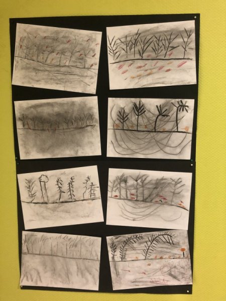 Les GS-CP découvrent le fusain [Show as slideshow] Pour représenter un paysage de tempête (vent, arbres dénudés), nous avons utilisé le fusain. Quel plaisir d’utiliser les mains! La semaine prochaine, nous allons essayé la craie.